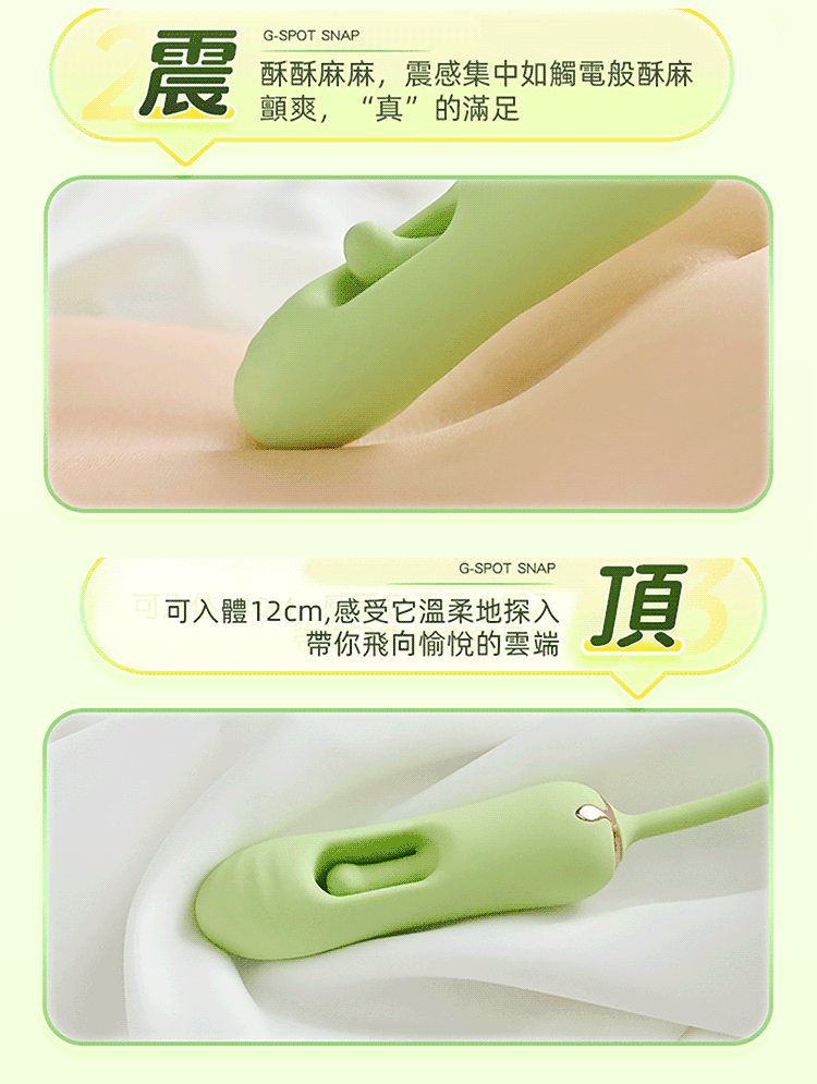 前端舌感拍打刺激 G 點,搭配深層強震頂觸 A 點,雙重快感一棒搞定!