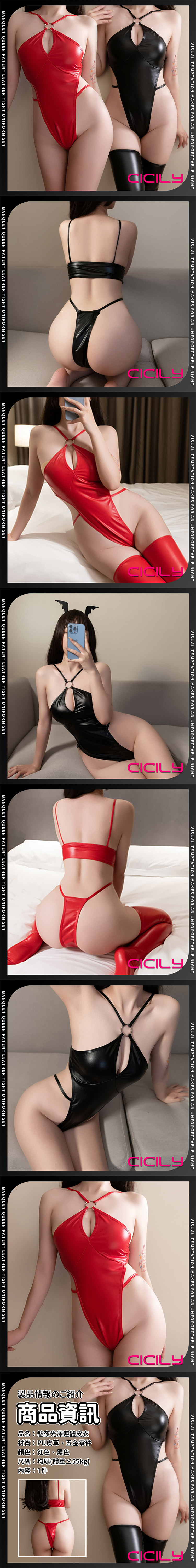品名:CICILY|魅夜光澤 連體皮衣
