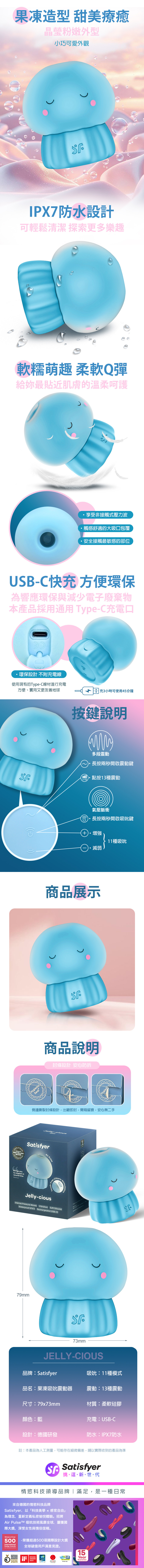 品名:Satisfyer|Jelly-cious|果凍陰蒂吸吮震動器 藍