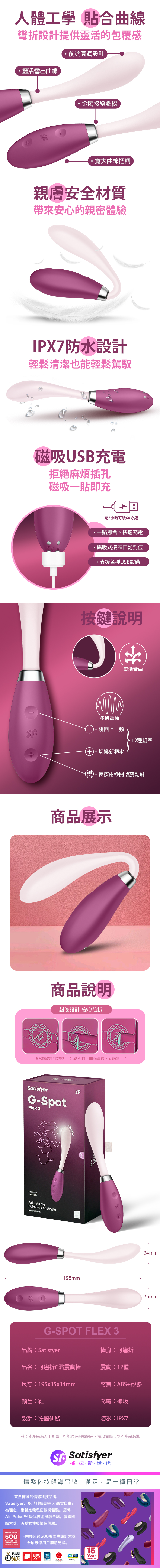 品名:Satisfyer|G-Spot Flex 3|可彎折G點震動按摩棒 粉