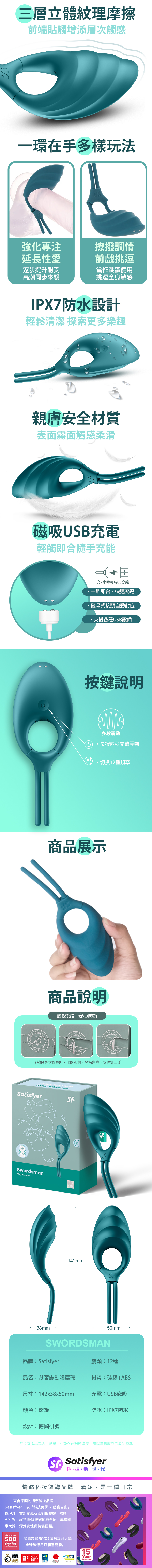 品名:Satisfyer|Swordsman|劍客 可調節震動環 綠