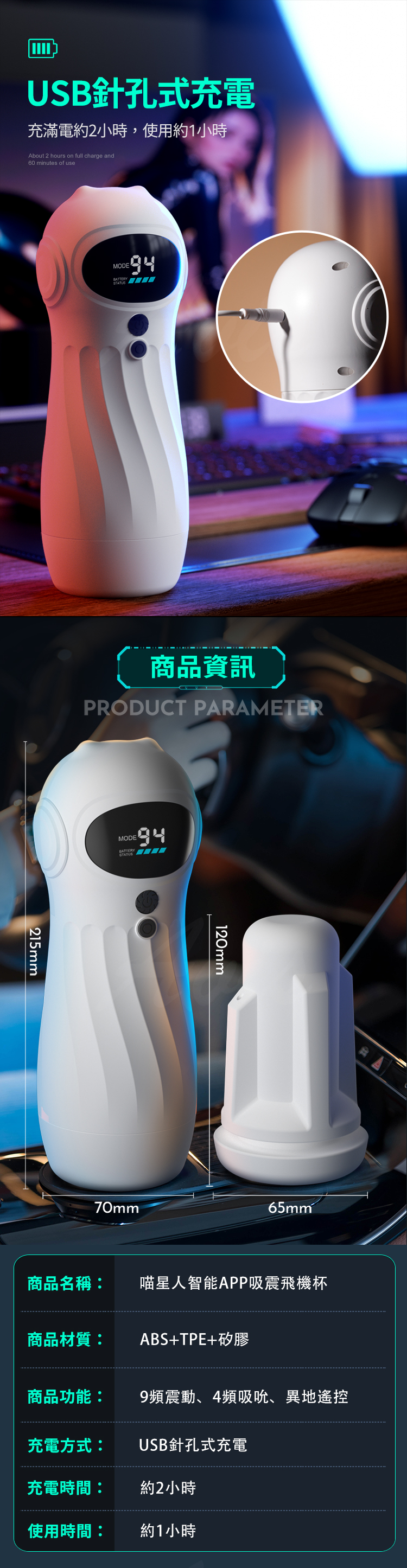 材質:ABS + TPE + 矽膠